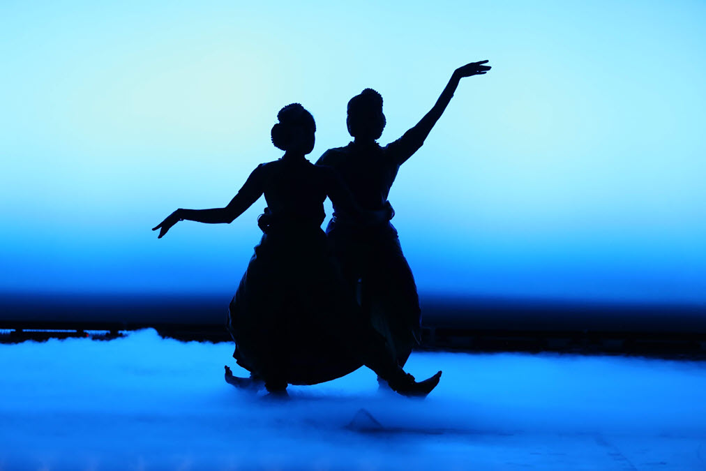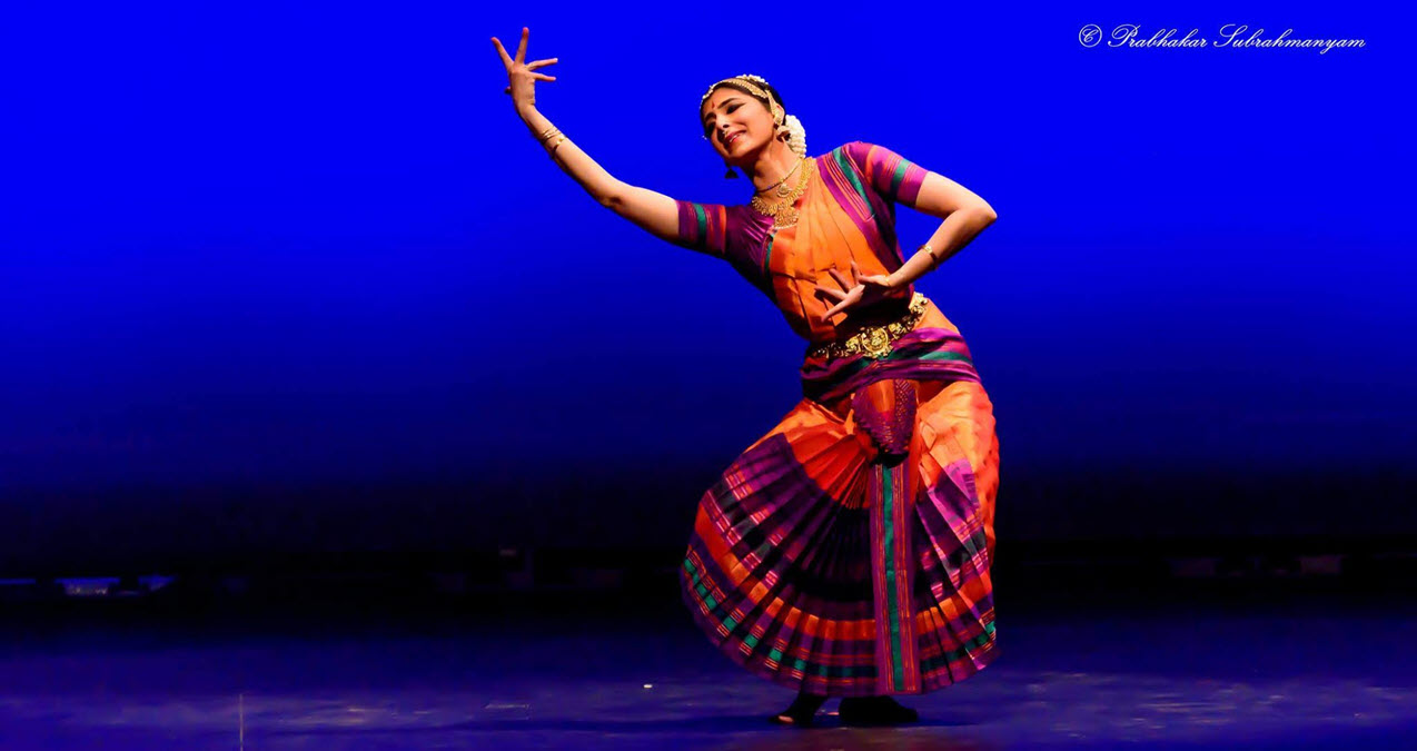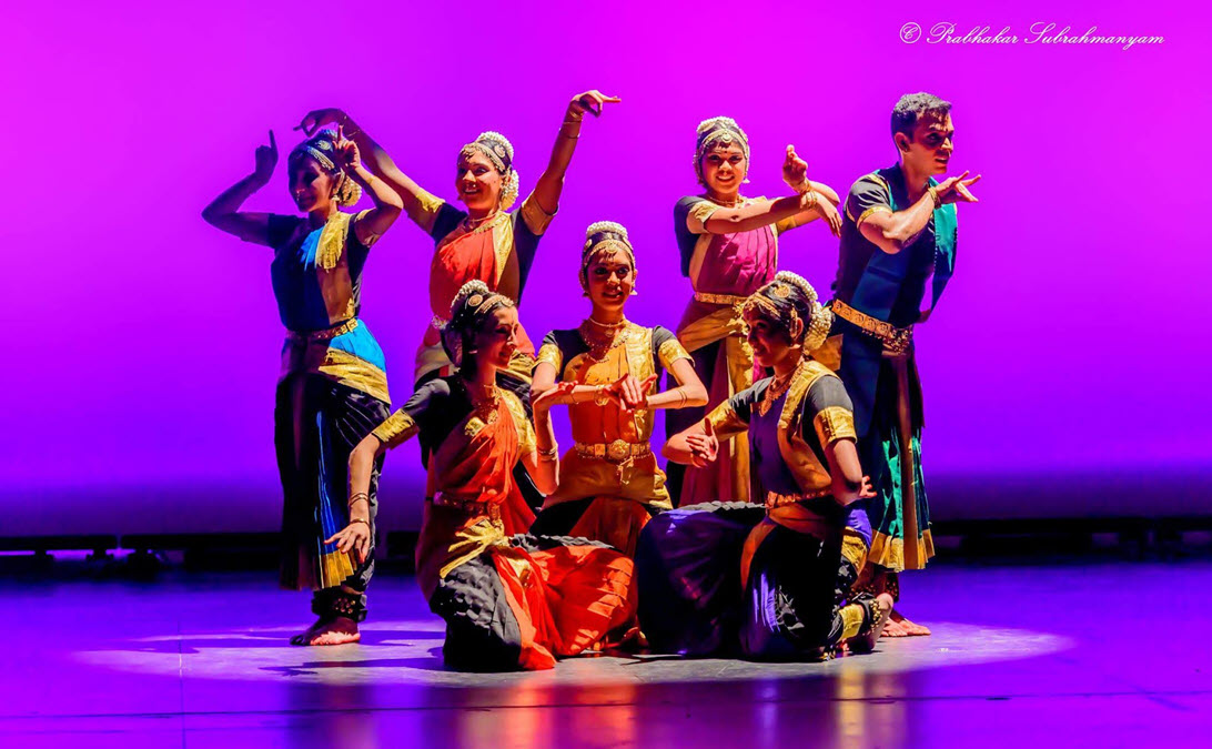 Dancers illustrate through beautiful song, dance, and drama how the One Self expands into the multiplicity of the universe: the Supreme Male Force and Creative Female Energy, the Trinity, the Four Vedas (Scriptures), the Five Elements, and so on. Māyā is mankind’s delusion in seeing division instead of understanding the Singular Truth.